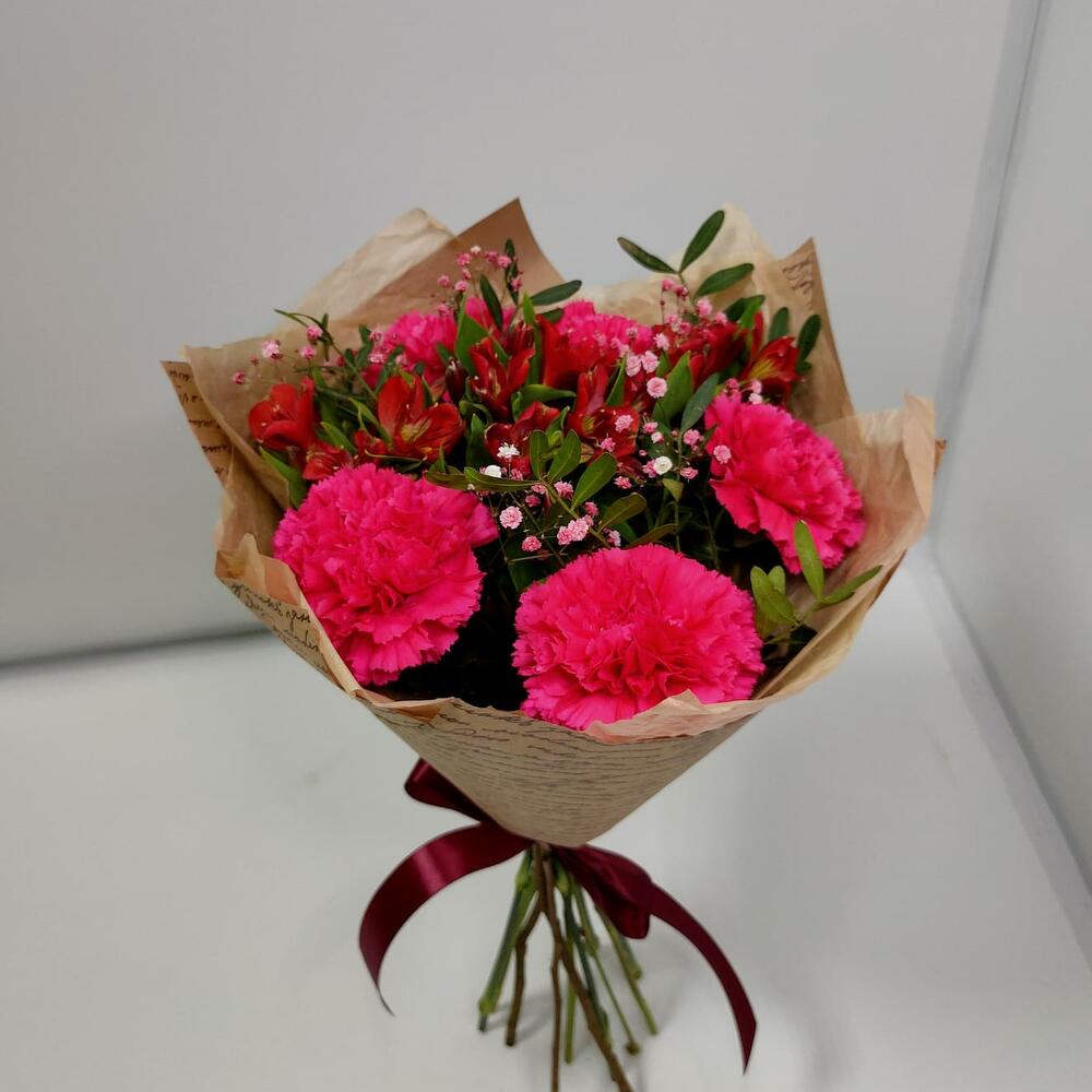 Букет из диантусов малиновых с альстромерией