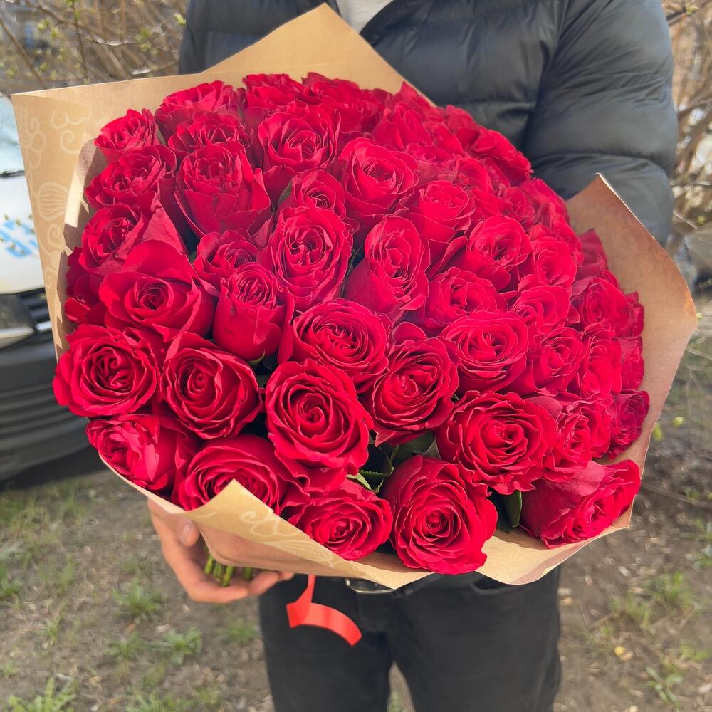 красная роза 40 см – 69 шт.Упаковка крафт – 3 шт.Упаковка пленка – 3 шт.