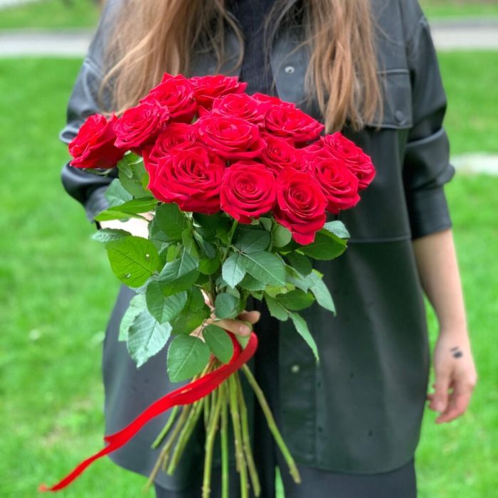 Букет из 15 красных роз Freedom 70 см (Эквадор)