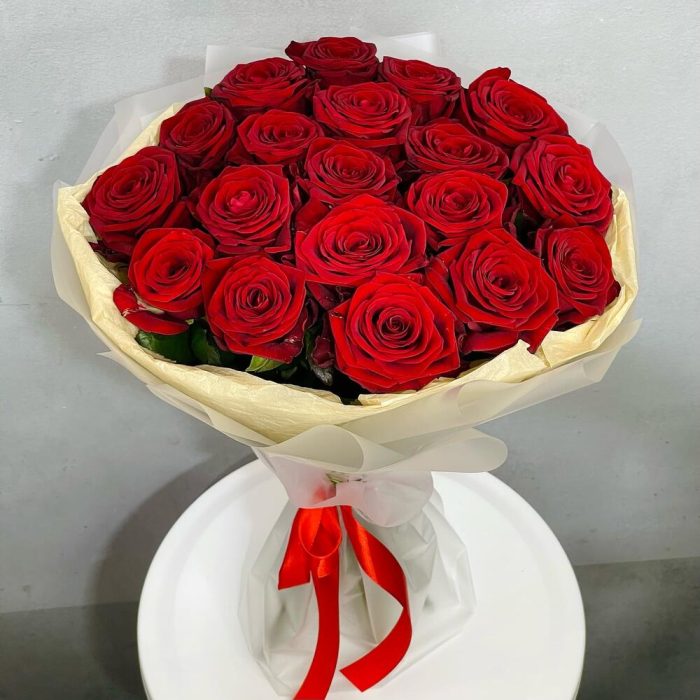 Лента атласная – 1 шт.Роза 70 см – 19 шт.Упаковка дизайнерская – 4 шт.