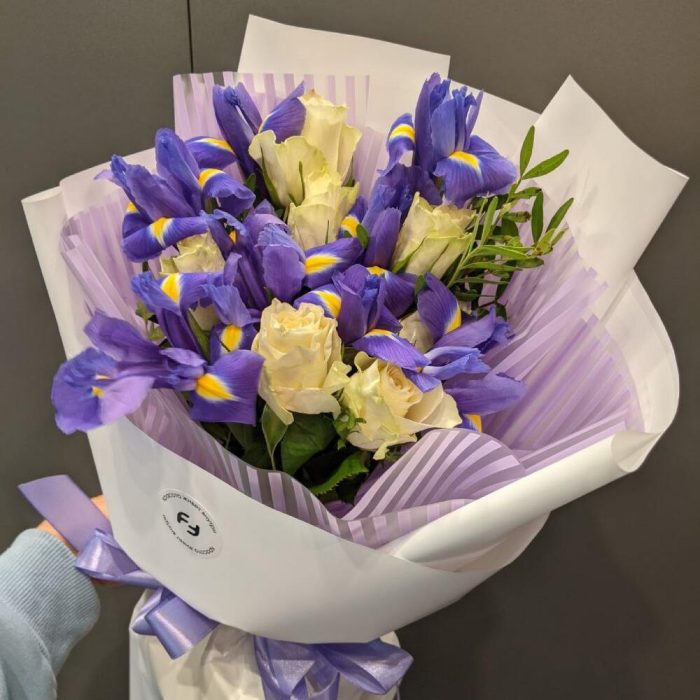 Букет из ирисов и белых роз