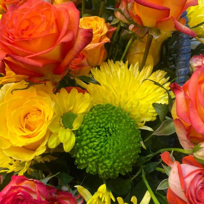 Альстромерии, Гвоздики, Кустовые розы, Лизиантусы, Розы, Хризантемы